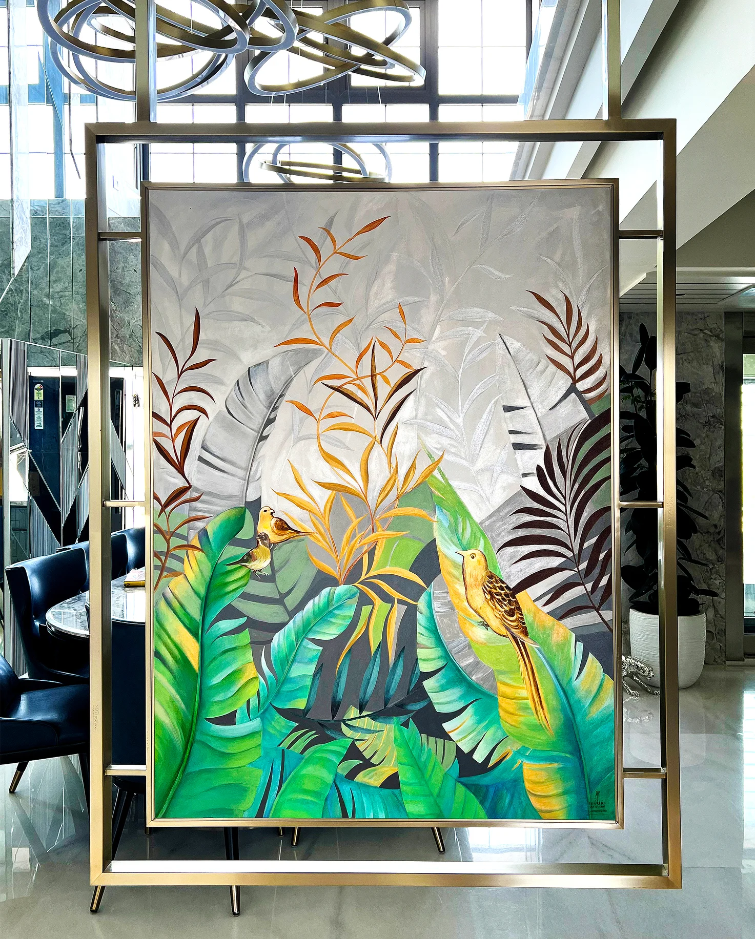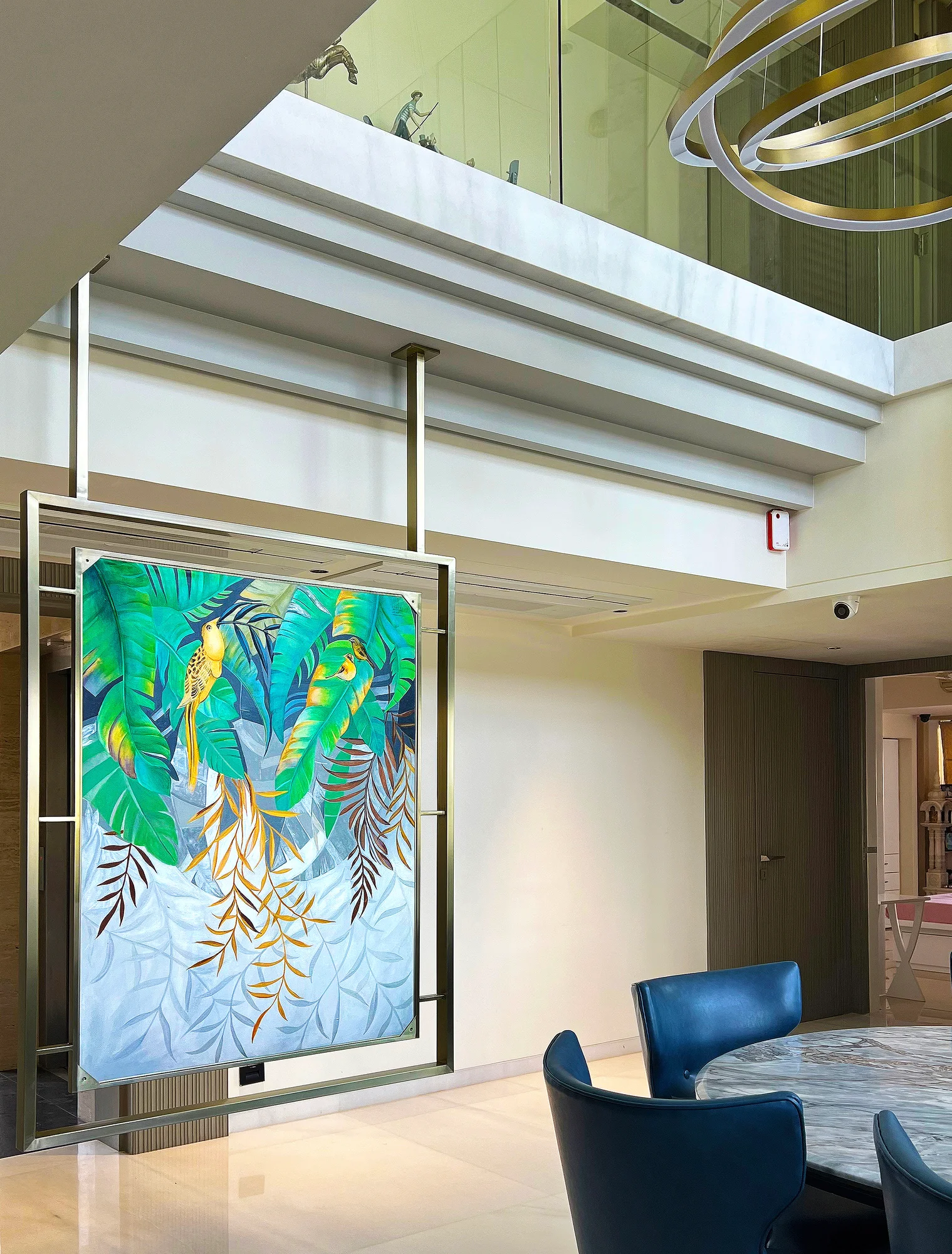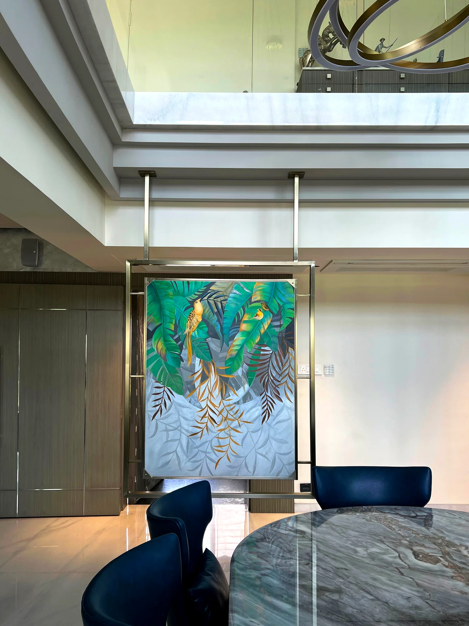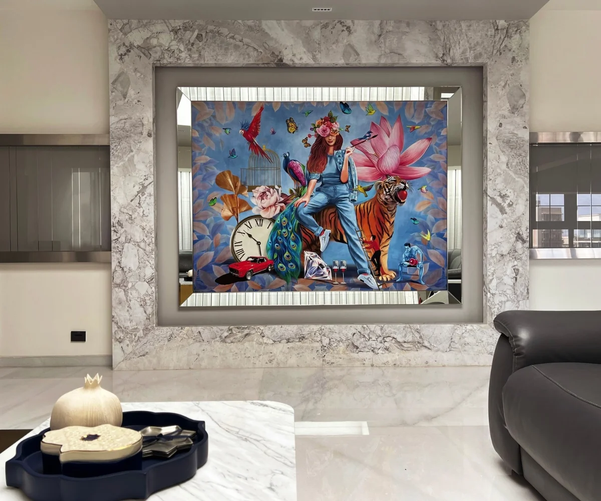 DESCRIPTION: This residential art curation project celebrates diversity in artistic expression, transforming the home into a sanctuary that feels both personal and inspiring. At its heart is double side vibrant, creative abstract canvas paintings inspired by nature, embodying individuality while infusing the living space with energy and color. Their dynamic compositions harmonize beautifully with modern design elements, creating a dialogue between bold artistry and serene living. Complementing these works, the digital painting stands as a powerful statement of creativity, enriching the interiors with meaning and character. Together, these pieces radiate tranquility while sparking imagination, leaving every visitor with a lasting impression of refined taste and the transformative power of art. This residential art curation project celebrates diversity in artistic expression, transforming the home into a sanctuary that feels both personal and inspiring.
